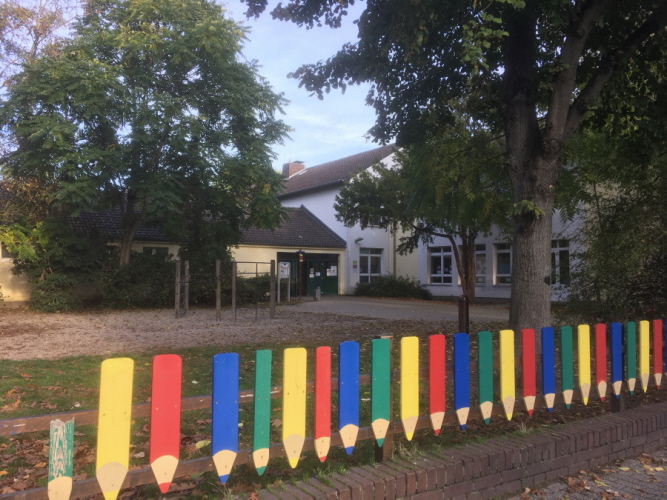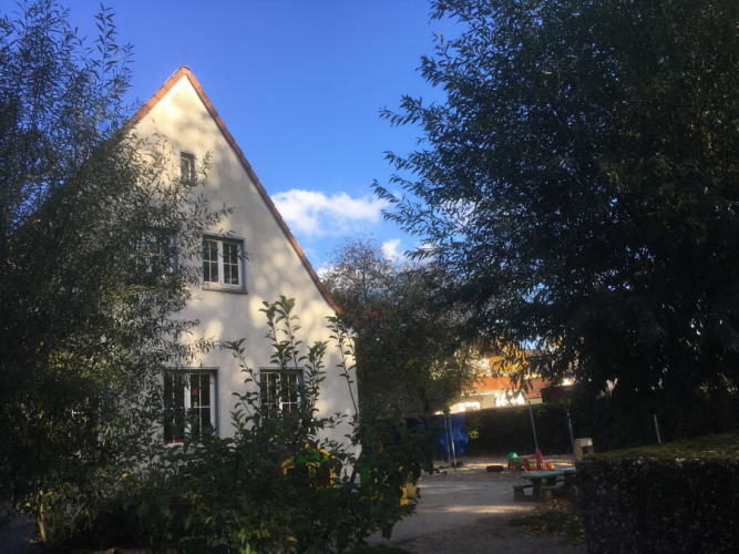 Mein Kindergarten, Hofseite - damals noch ohne Sicherheitszaun mit Klingel vor dem Eingang