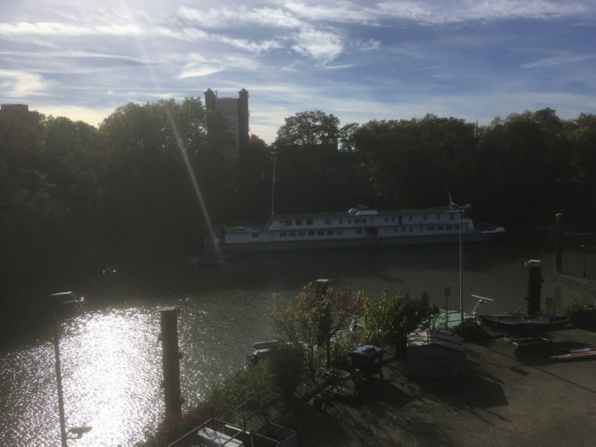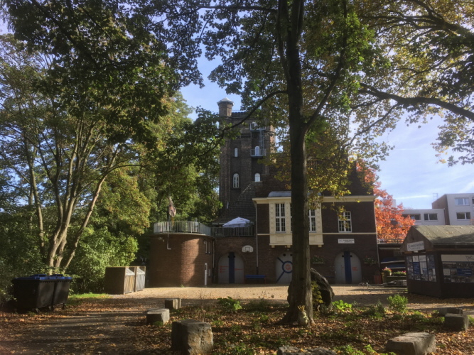 Homberger Ruderklub Germania oberhalb des Schulschiffs