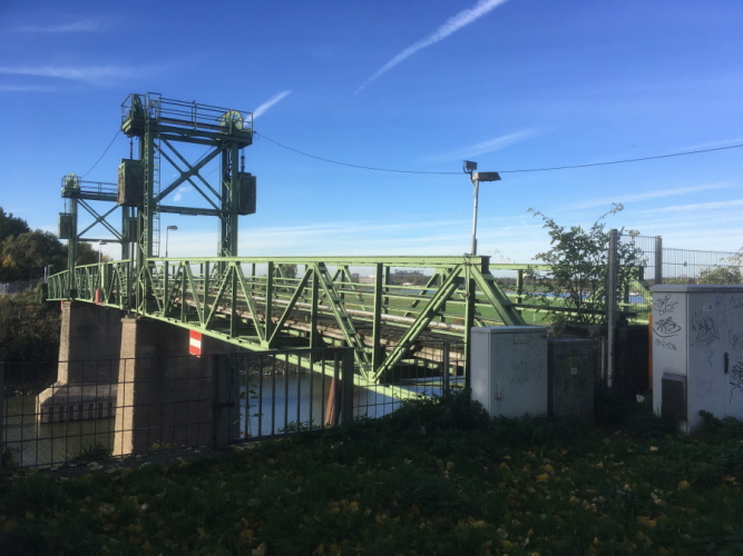 Der alte Radweg am Rhein - damals mit noch aktiver Klappbrücke